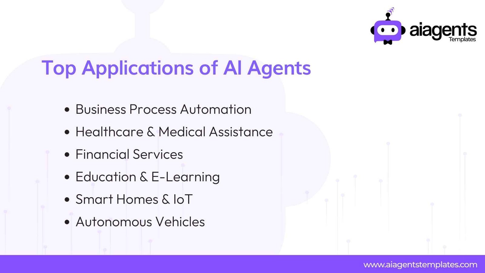 AI agents are revolutionizing diverse industries by enhancing automation, improving security, and optimizing efficiency. Below are some of the top applications: